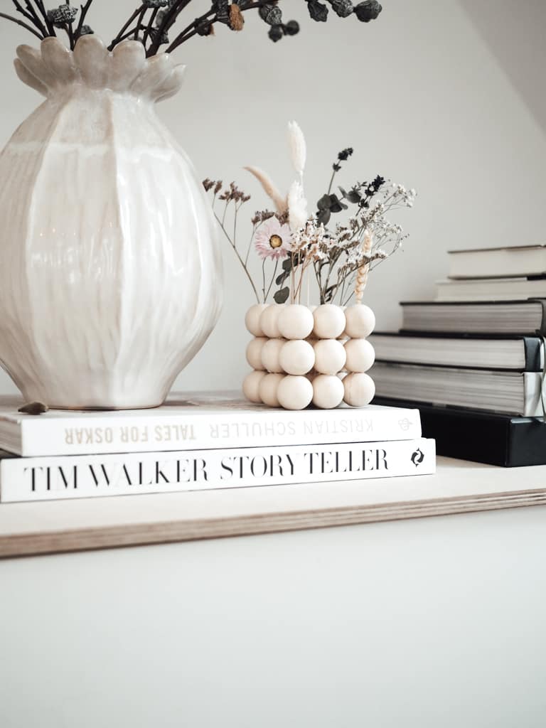 Jetzt noch ein paar hübsche Trockenblumen hineinstecken und fertig ist Deine Holzvase!