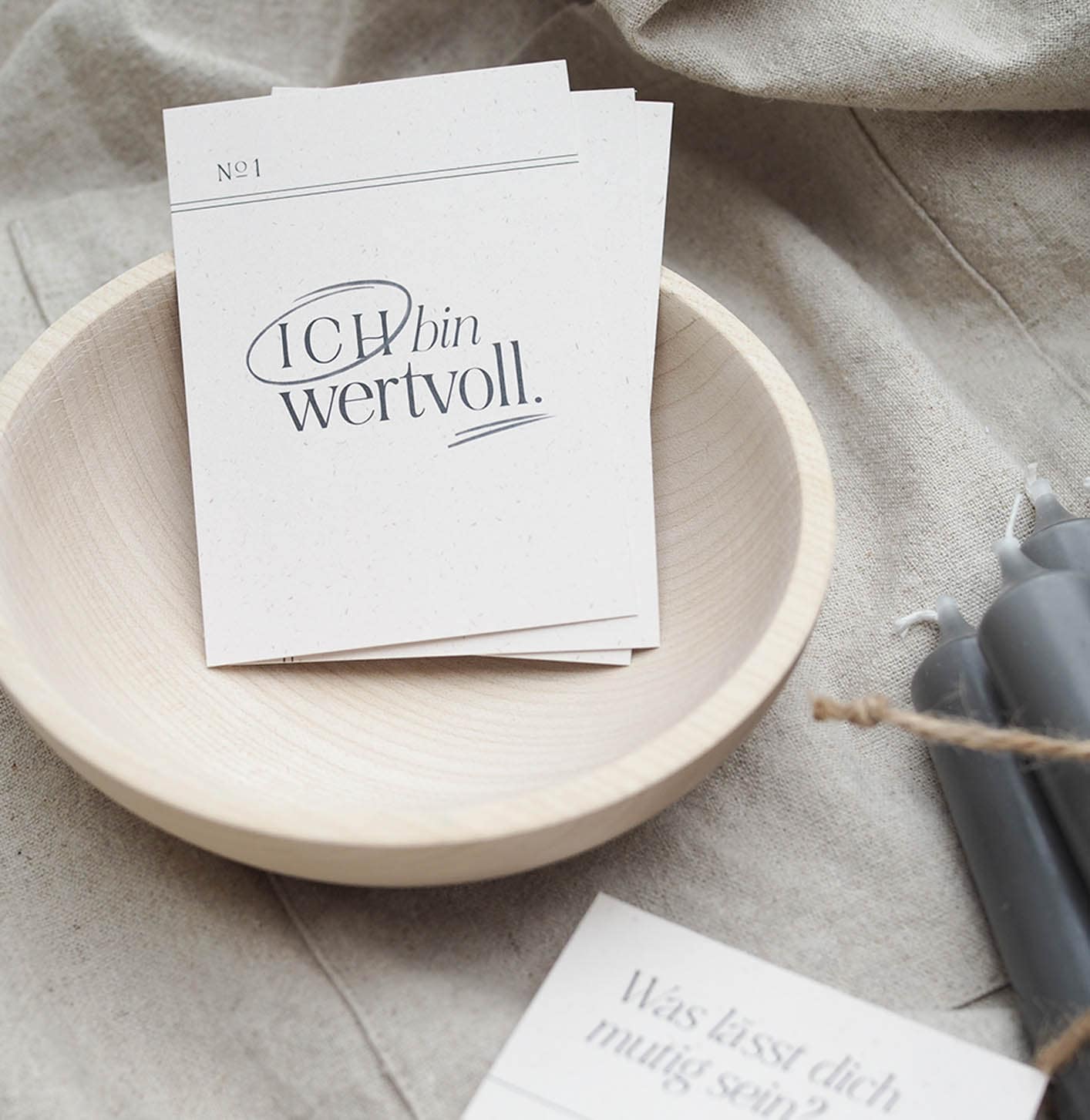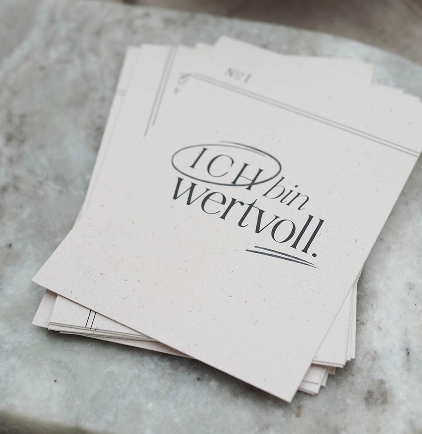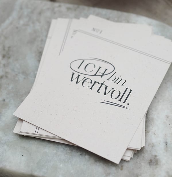 Unser Selbstwertgefühl und das Wohlbefinden können wir nur mit der Kraft unserer Gedanken steigern. Das ist sogar wissenschaftlich belegbar! Dieses Karten Set haben wir für Dich entwickelt und die Karten warten nur darauf Dich stärker, gesünder und glücklicher zu machen. Noch dazu sehen sie hübsch aus und zaubern Dir ein Lächeln ins Gesicht. Klebe doch mal Deine zwei wichtigsten Kärtchen an den Spiegel, in den Du morgens schaust. Oder vielleicht legst Du die Karte, die gerade besonders wichtig für Dich ist, auf Dein Nachtschränkchen.