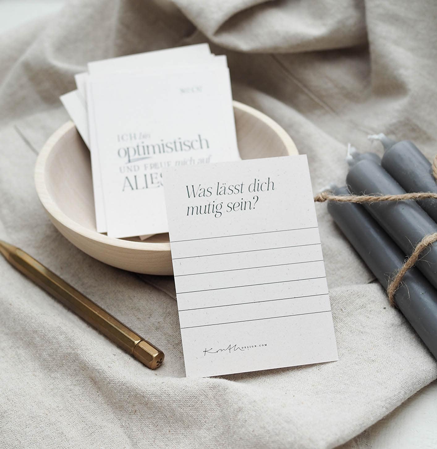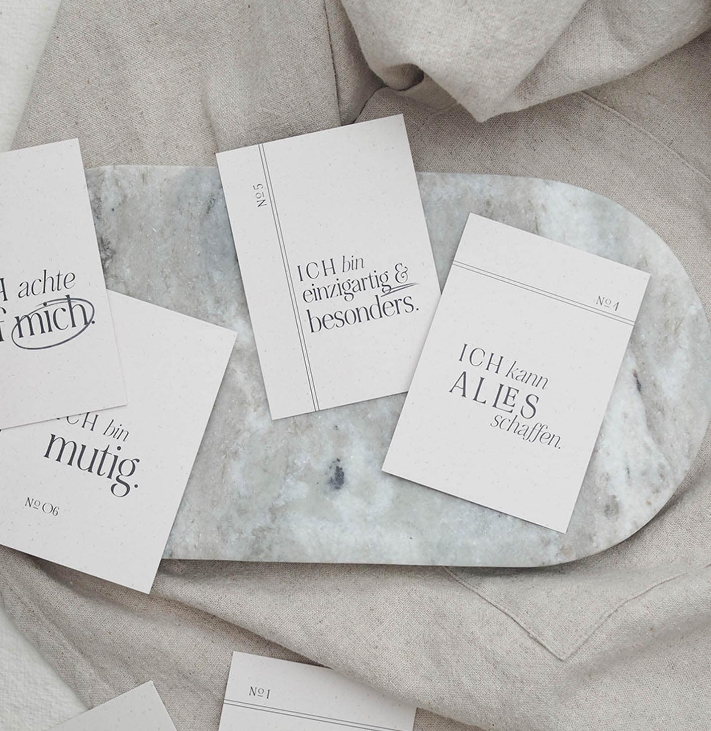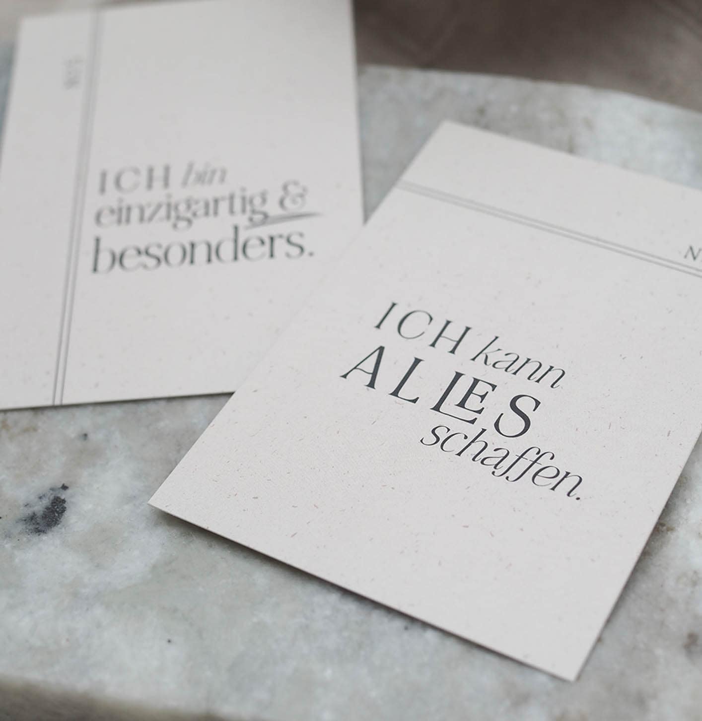 15 unterschiedliche Affirmationskarten mit beschreibbarer Rückseite