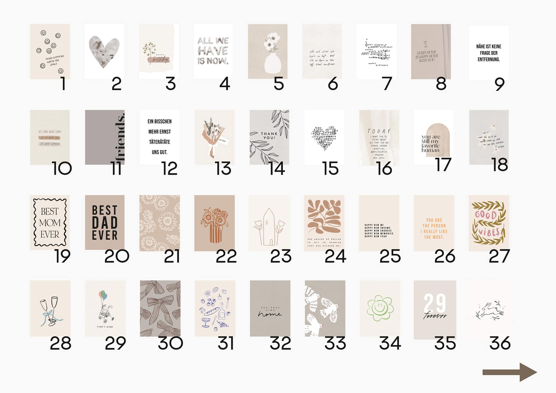 Unsere Postkarten bekommt ihr im 6er, 12er Set oder 24er Set. Wir drucken auf hochwertigem 300g Karton. Die Oberfläche ist seidig-matt und die Karte im klassischen A6 Format. Die Rückseite ist blanko und nur mit einem kleinen Logo von uns versehen.